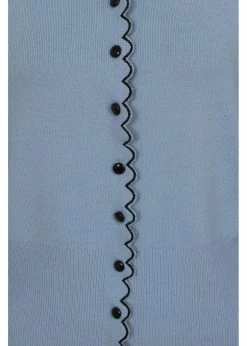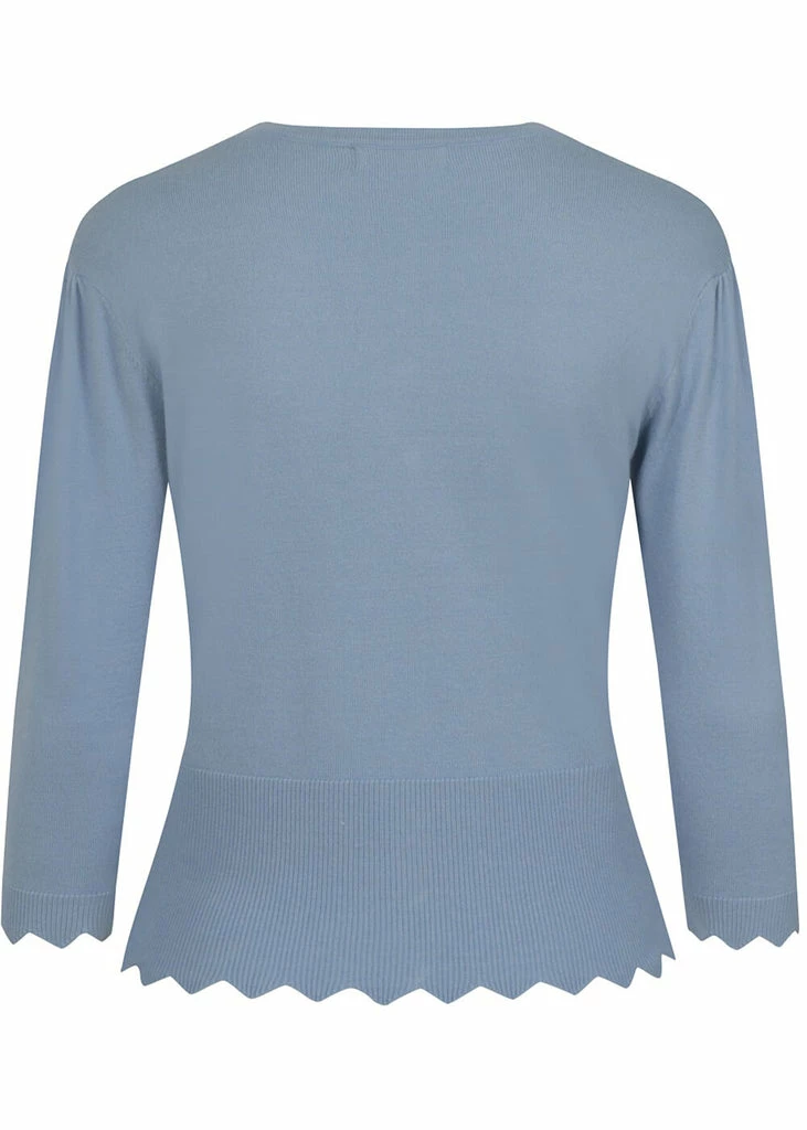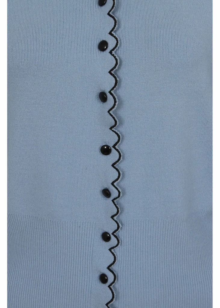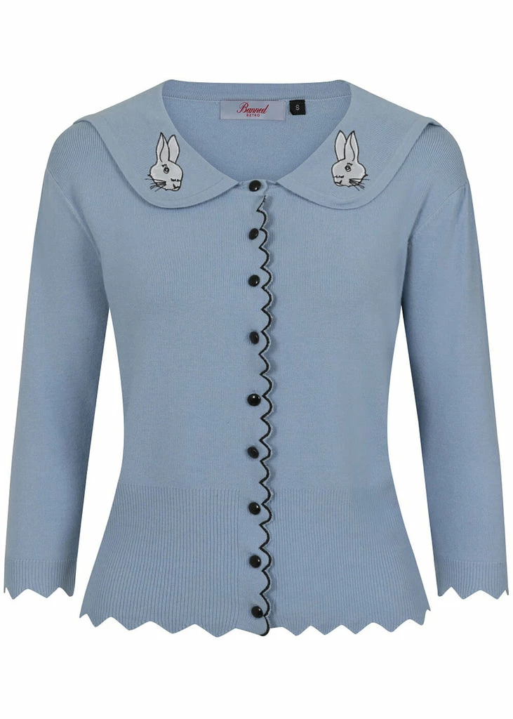 They’re wispering sweet things, the little rabbits on the Peter Pan collar! This highlight of cuteness is made of a soft mix with viscose and nylon, that feels nice and soft and has a fine stretch. She closes with smooth buttons in the front, that is playfully decorated with a wavy edge, which is extra flashy thanks to the contrast stitches. The bottom seam and the ends of the sleeves are also wavy and keep the warmth where we want it: inside 😉