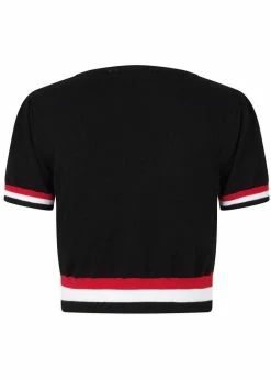 This retro-responsible top is a shorter model with buttons across the front, so you finally have the perfect partner for all your high waist skirts and trousers. Because of her soft mix with viscose she feels airy, while the ribbed edges ensure a beautiful fit by the waist and sleeves. The scarf detail is of course a big fat wink to the sailor style, so straighten your back and puff your chest out and go 🙂