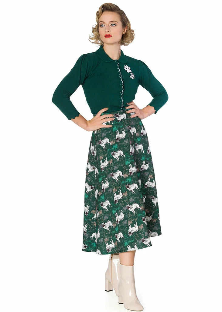 Follow the playful pawprints! Just like we’re used to from Banned, this beauty is made of a lovely soft viscose-mix, that wears heavenly and gives her a slight stretch. She closes with smooth buttons in the front. The ribbed seams on the sleeves and at the bottom keep the warmth.