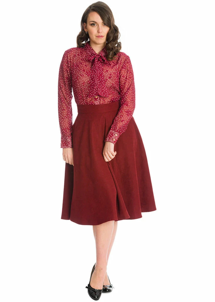 This high waist model is made of a gorgeously flowing, smooth fabric that looks like faux-suede without stretch. So no frippery, which lets you combine endlessly, from elegant blouses to turtlenecks and cozy cardigans… She closes with a zipper in the back and for a height of 1.70 m, she ends around or just below the knees. And yes, she has pockets!