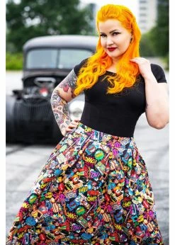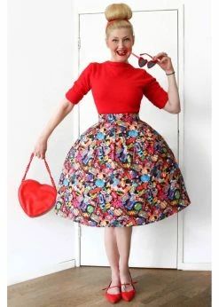 This beauty is worn in the waist, from where inverted pleats are flaring into a full skirt with pockets, that you can beautifully wear with one of our petticoats to make the pictures really come to life. For a height of 1.70m, she ends around the knees and she closes with a zipper and a hook in the back.