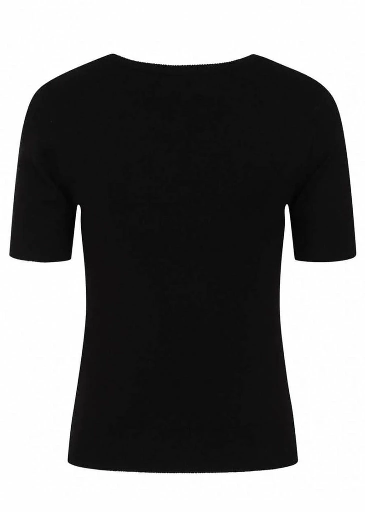 This playful wink towards their spooky collecties feels lovely to wear with her knitted viscose-mix with stretch making you want to wear her all year round. The bat is embroidered and the ribbed edges around the sleeves and bottom ensure a beautiful fit.