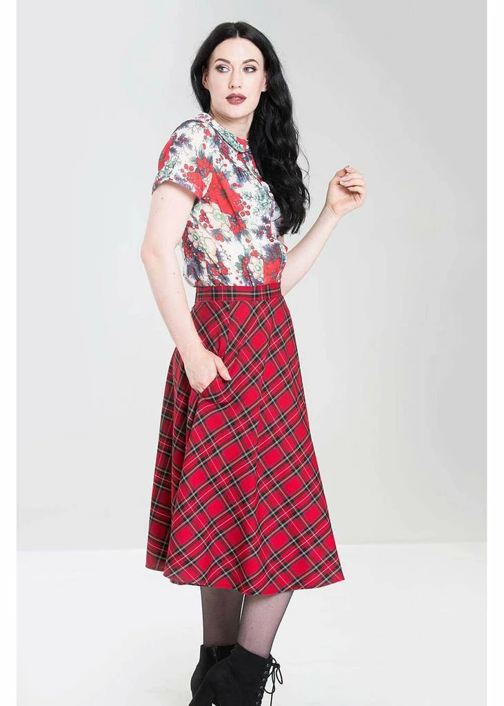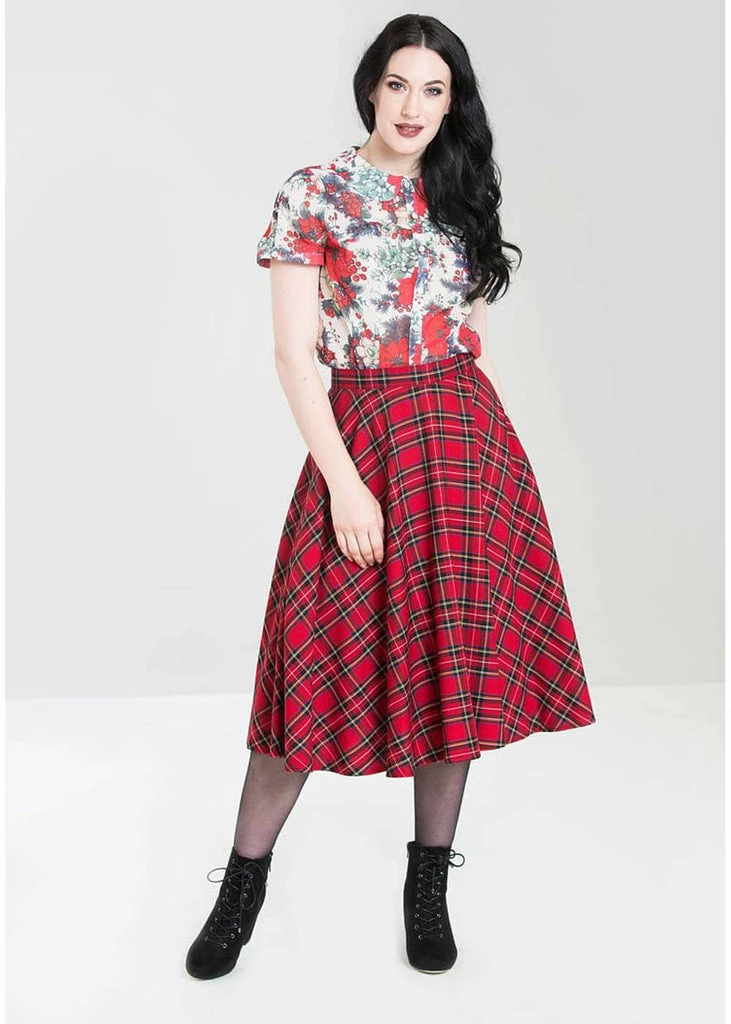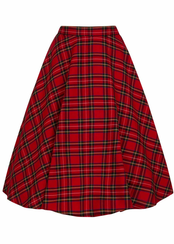 Every fall we fall head over heels for tartan, and Hell Bunny brings us this irresistable version! This beauty is made of a soft feeling fabric with no stretch and is worn in the waist, down from which she flares out into a full circle skirt with pockets. Stunning when worn together with one of our petticoats for that perfect 50’s look! With a height of 1,70 she reaches below the knee and closes with a zipper and button on the back.