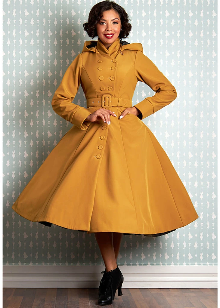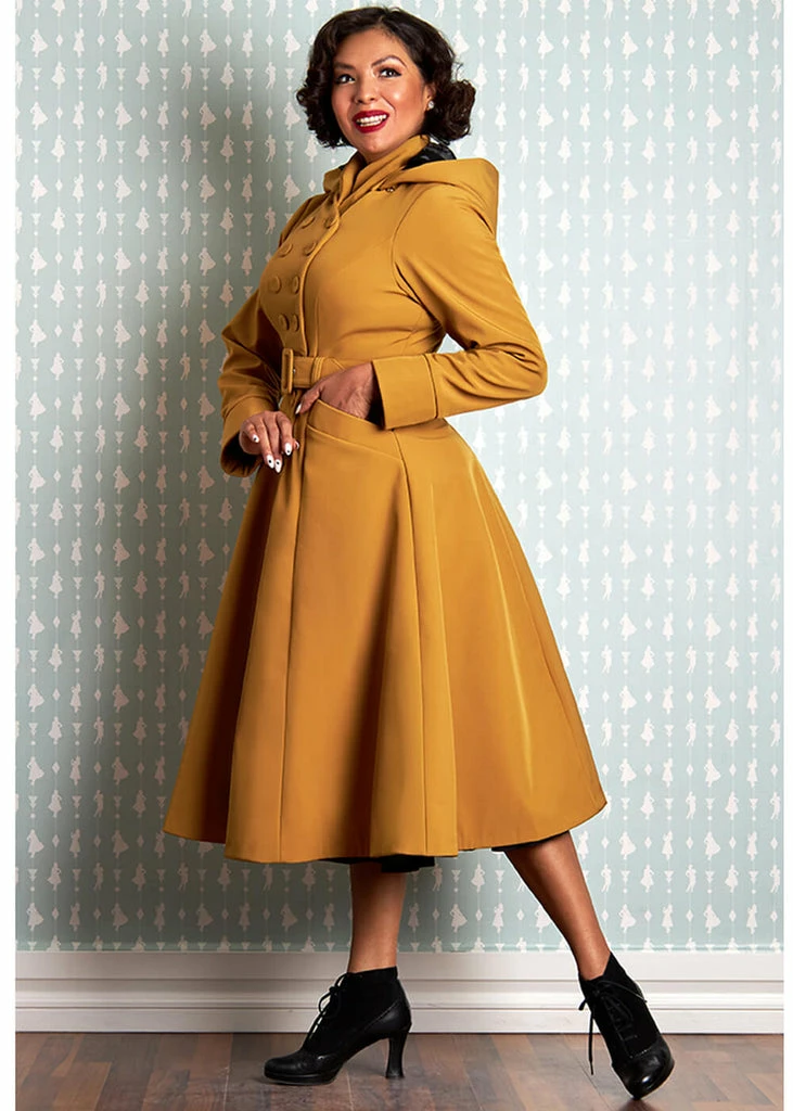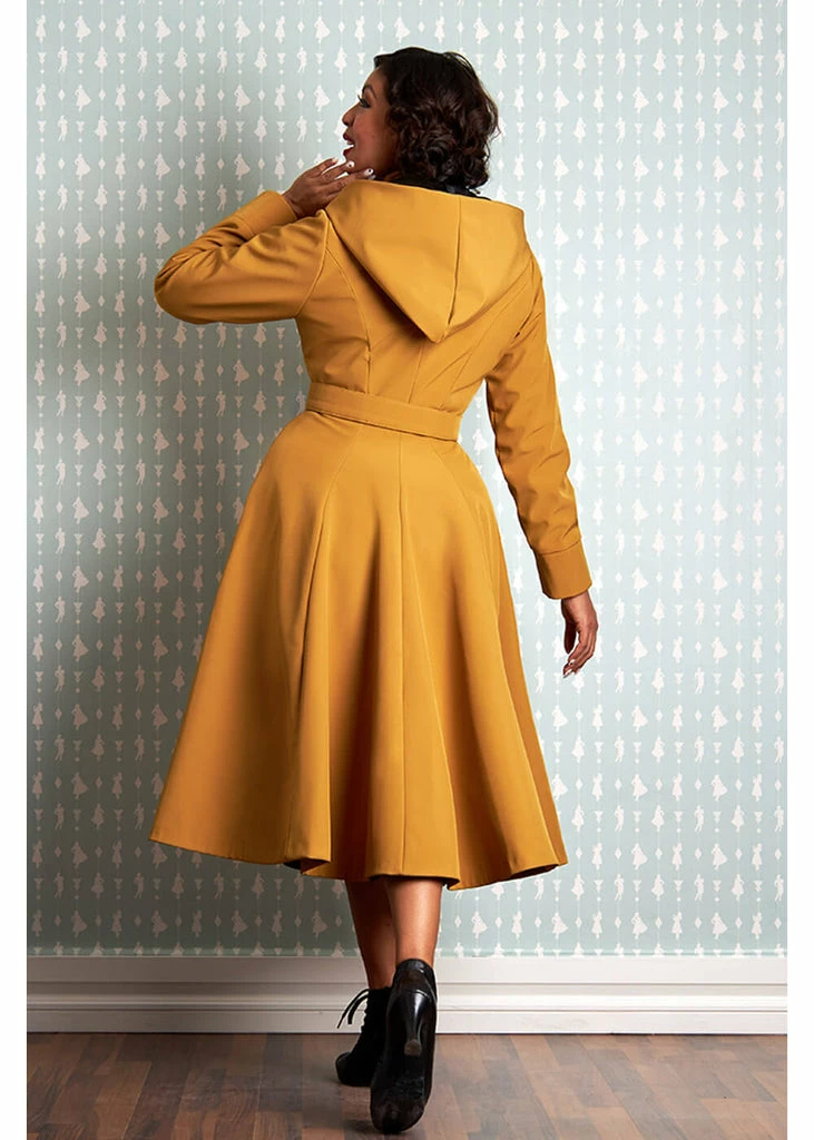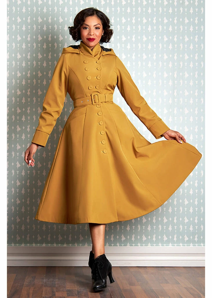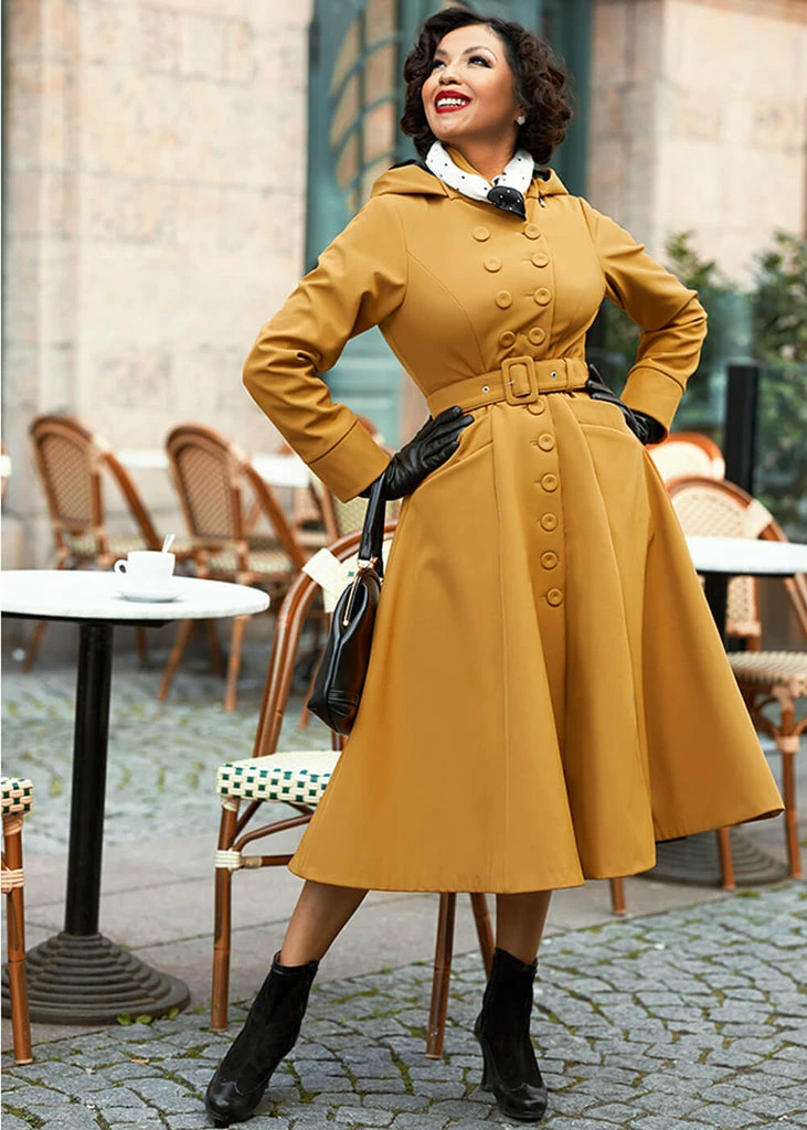 You’ll keep spinning in this trenchcoat, because thanks to the pleats on the sides and the back, she has a lovely full skirt with pockets! Perfect to keep your petticoat-dresses dry 😉