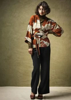 Her rolled-up half-long kimono sleeves are elegantly wide, for a chic look from the 20’s, 40’s or 70’s, depending on what you wear her with! So will it be the maxi or the pencil dress, jumpsuit or trousers with skinny or wide legs?