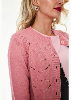 Voodoo Vixen Heart 50’s Cardigan Pink